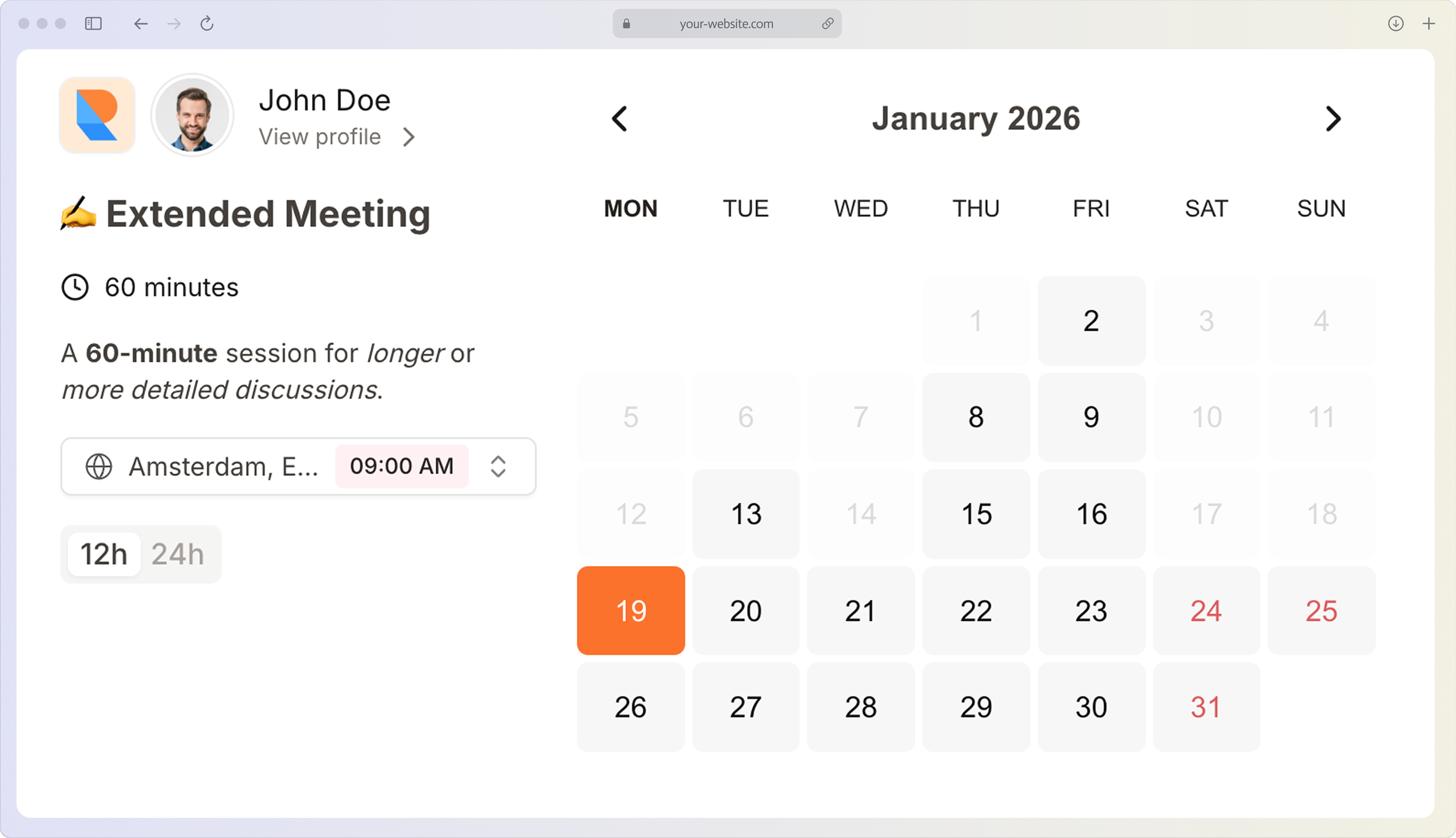 Set your availability, meeting duration, and booking rules so people know when they can book.